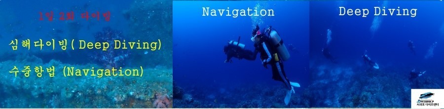 필수 - 딥 다이빙(18m 이상) + 수중항법(네비게이션) 이론 및 실습 다이빙