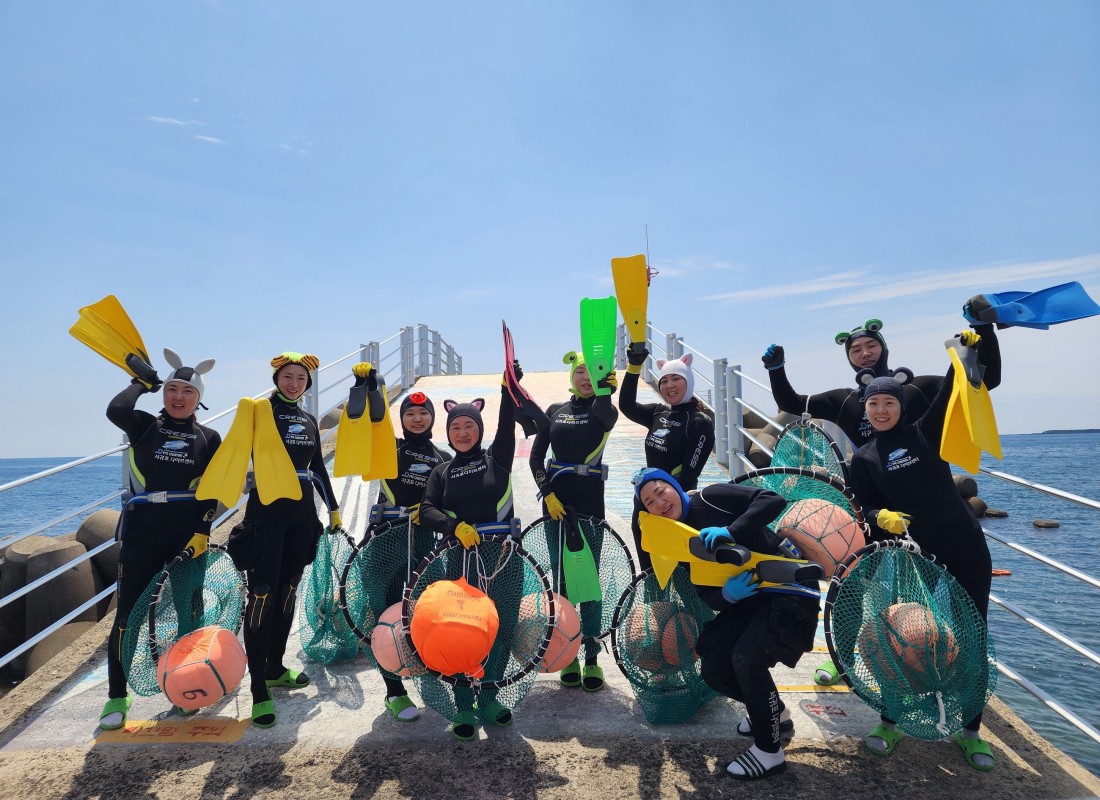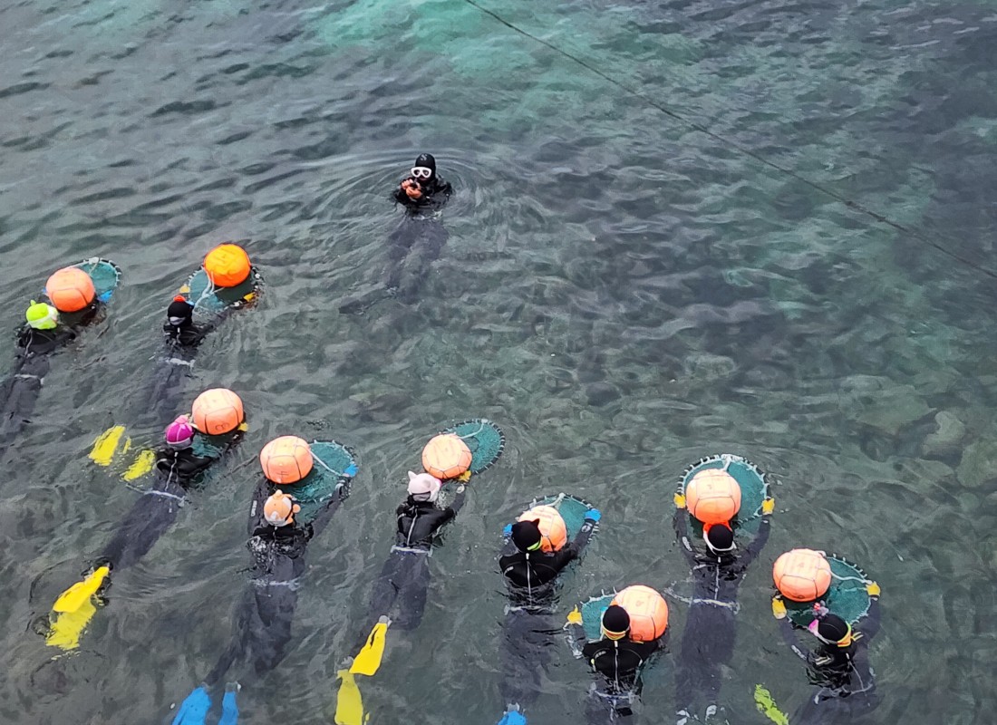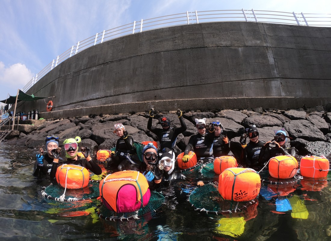 해녀체험은 물질 복장을 하고 해산물 채취해보고 맛 보는 체험입니다.